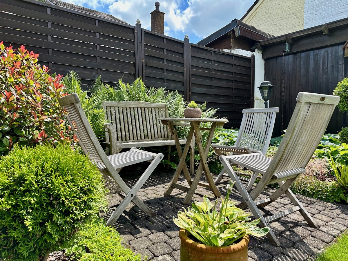 • Offenes Wohn-/Esszimmer mit Küche, Terrasse und Garten.
