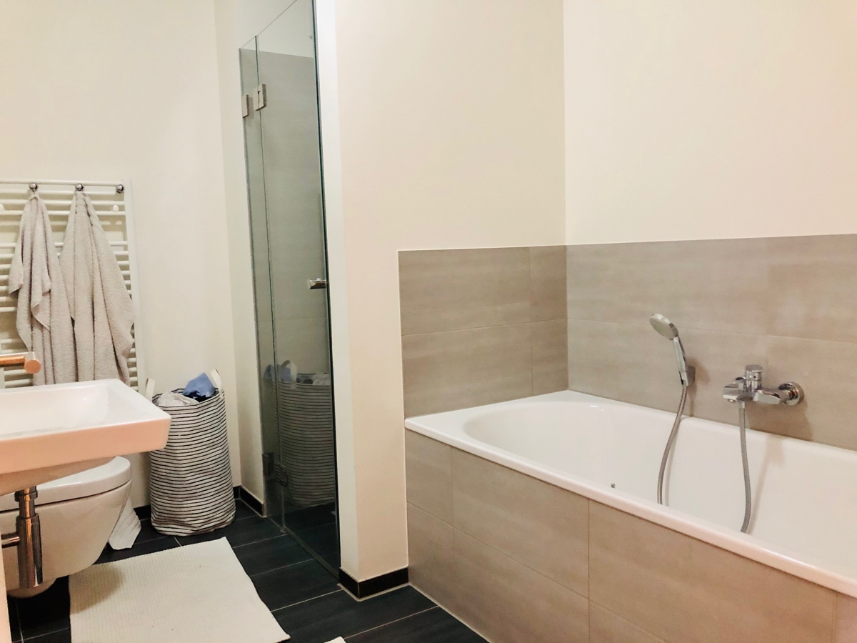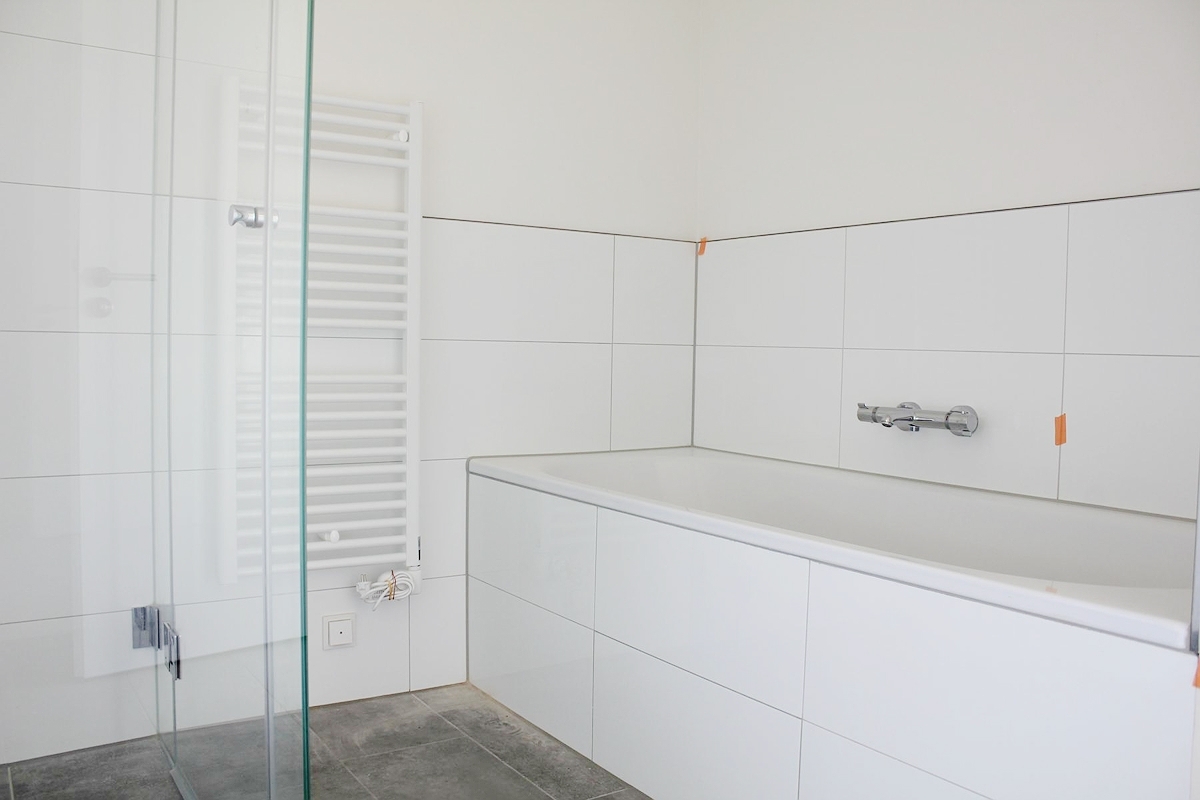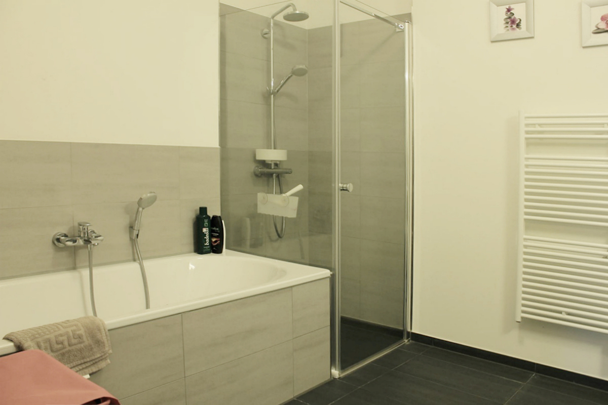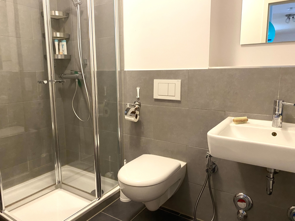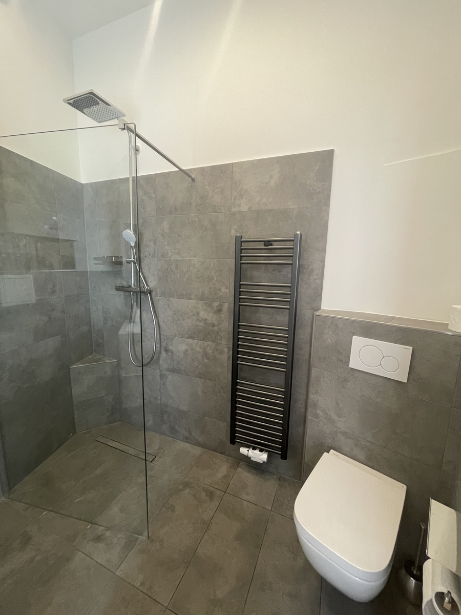 Das Badezimmer wurde gerade komplett saniert und mit einer modernen und ansprechenden Ausstattung versehen.