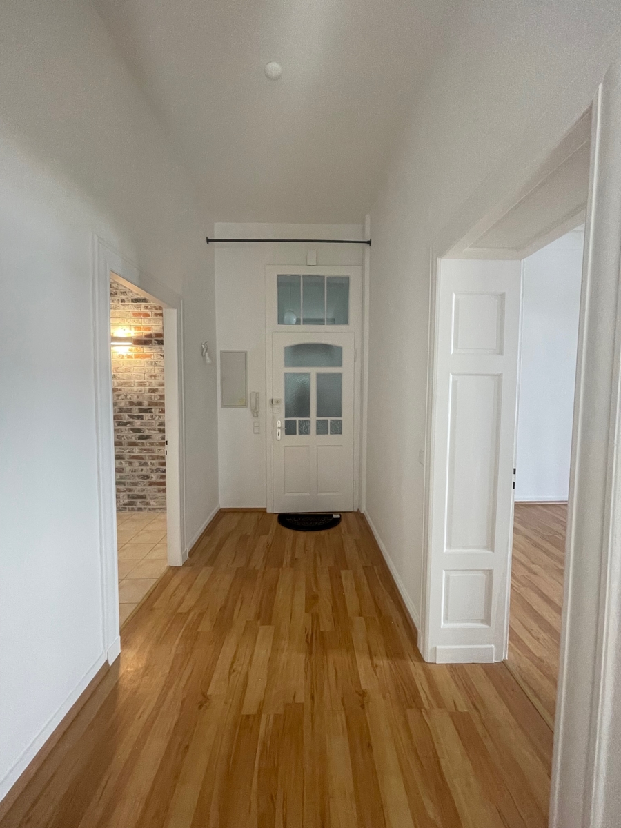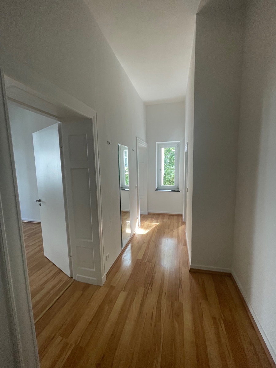 Insgesamt stehen 3 großzügige Wohn- bzw. Schlafräume, der Flur, eine große Küche sowie ein Badezimmer mit Duschbad und Fenster zur Verfügung.