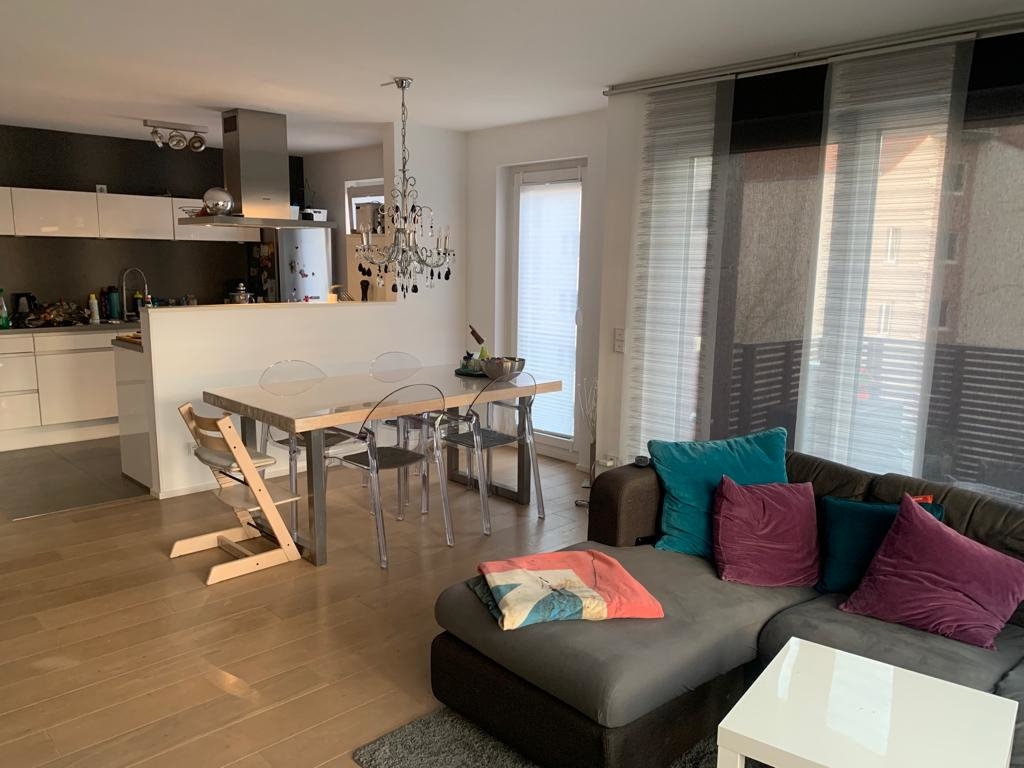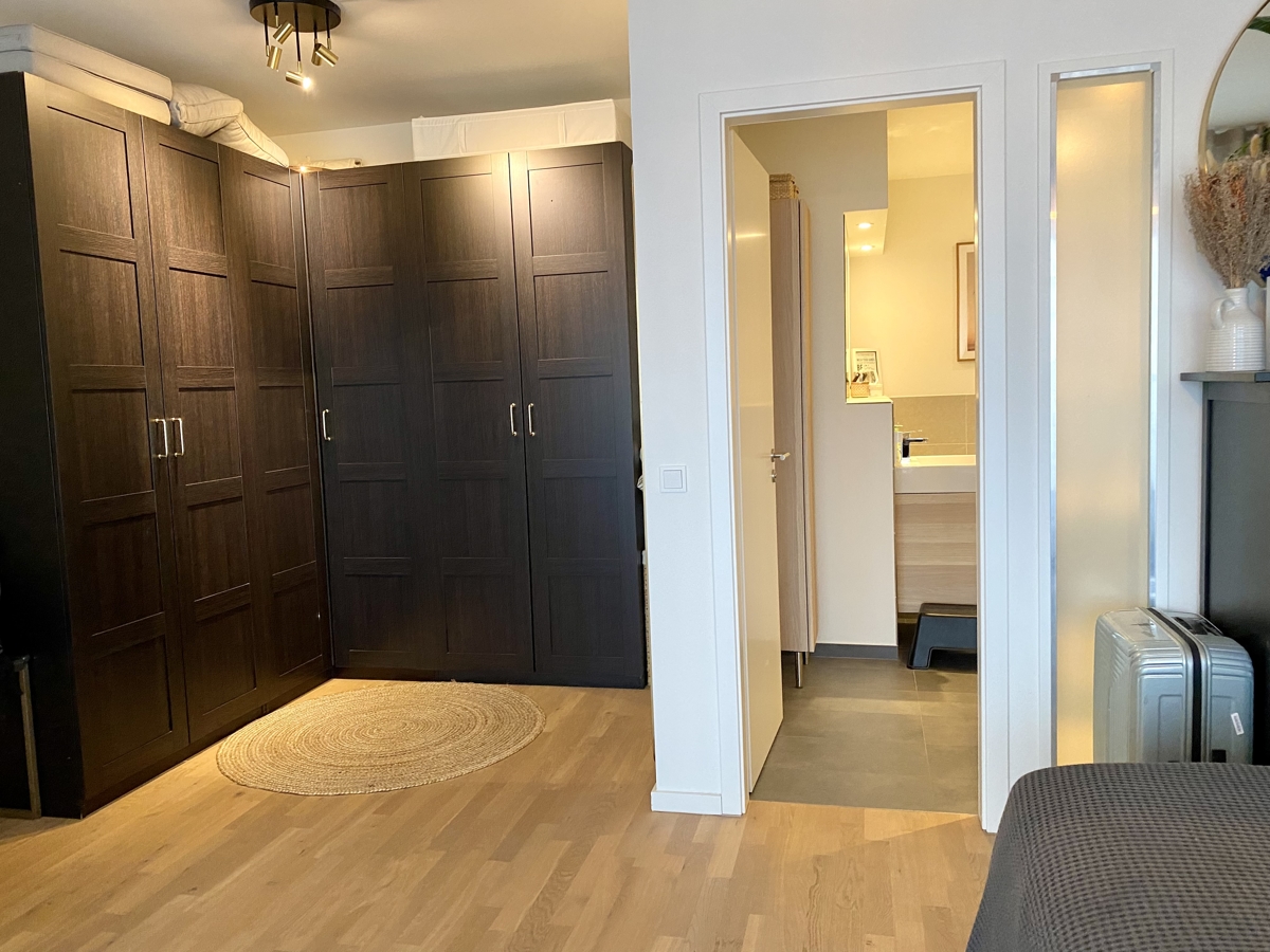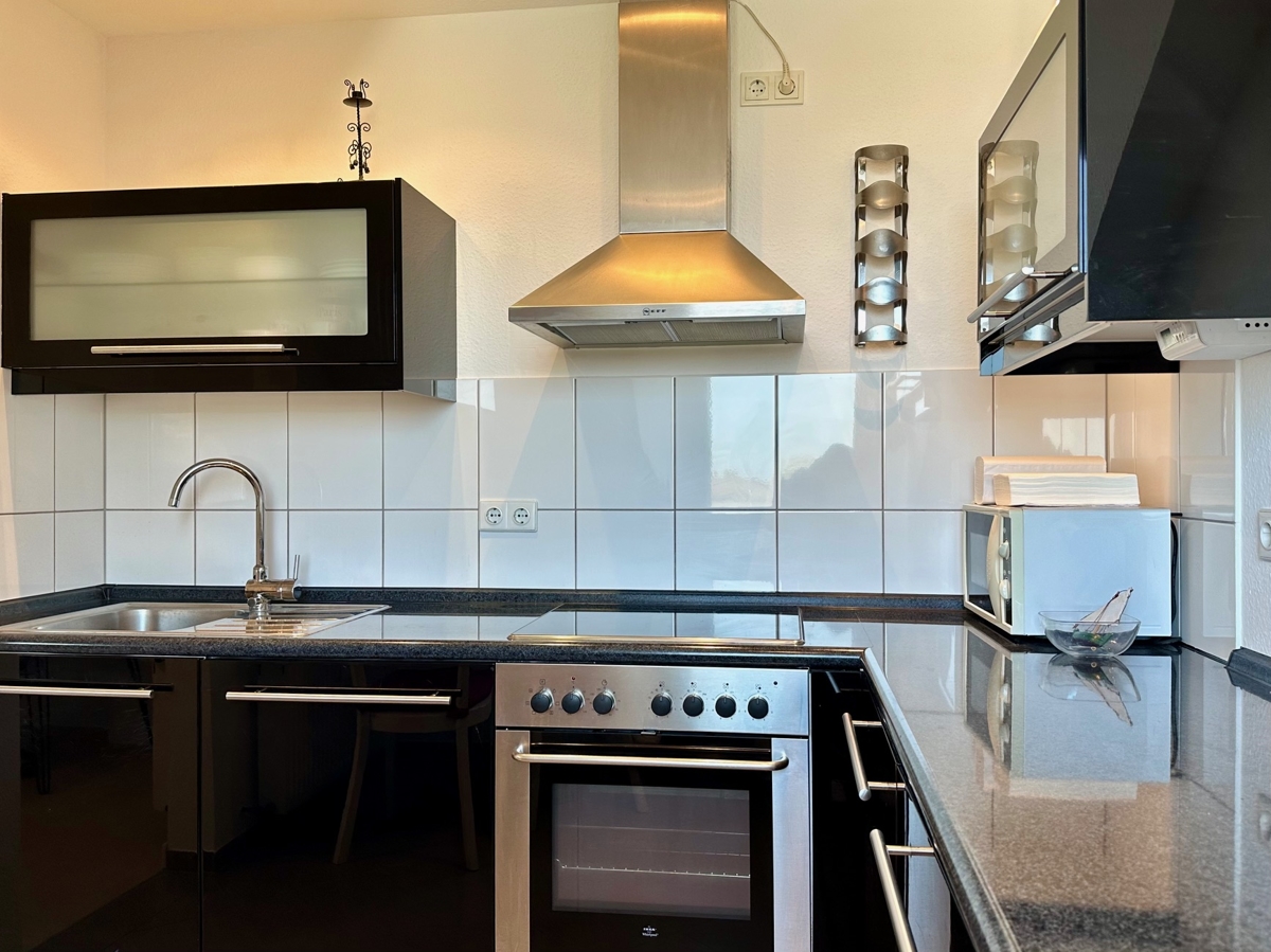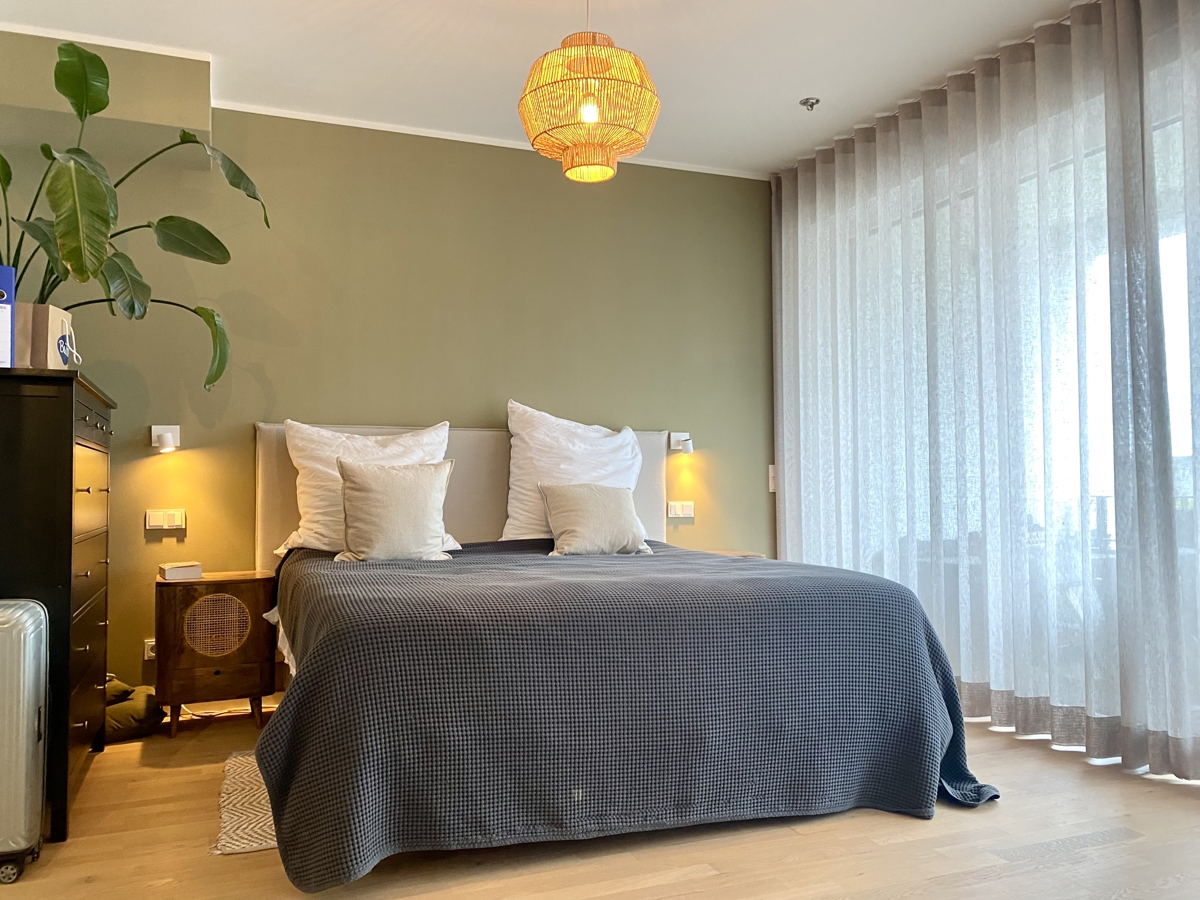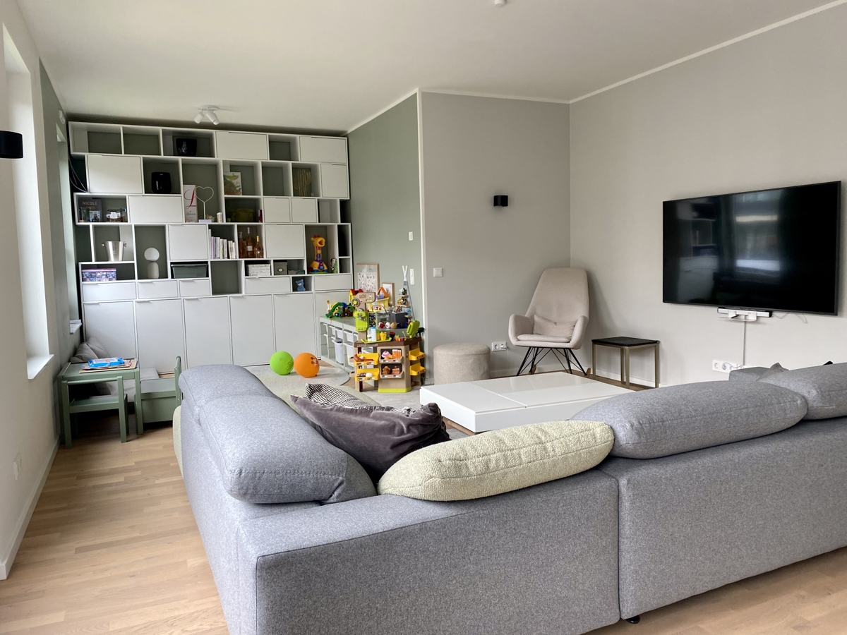 Das geschmackvoll eingerichtete Wohnzimmer überzeugt mit einem großen Fenster, das viel Tageslicht einlässt, und einer angrenzenden, offen gestalteten Küche. Die Küche ist nicht nur funktional, sondern bietet ausreichend Platz für kulinarische Entfaltung – perfekt auch für gesellige Abende mit Gästen. Die stilvolle Möblierung der gesamten Wohnung umfasst alles, was Sie für einen komfortablen Start benötigen, von gemütlichen Sitzmöbeln bis hin zu praktischen Haushaltsgegenständen.