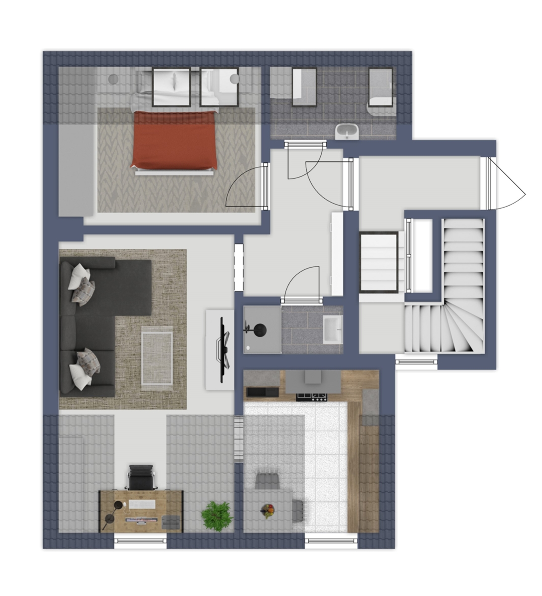 Diese helle und gut geschnittene 2-Zimmer-Wohnung im Dachgeschoss eines gepflegten Mehrfamilienhauses bietet höchsten Wohnkomfort in einer begehrten Lage von Düsseldorf. Ein Aufzug sorgt für einen bequemen Zugang zur Wohnung, sodass nur noch ein paar Treppenstufen genommen werden müssen.Beim Betreten empfängt Sie ein einladender Eingangsbereich. Von hier aus gelangen Sie in das helle Badezimmer mit Waschtrockner sowie in das separate Duschbad. Das ebenfalls lichtdurchflutete, ruhig gelegene Schlafzimmer bietet durch die charmante Dachschräge und eine stylische Einrichtung eine besonders gemütliche Atmosphäre – ideal zum Abschalten und Erholen.