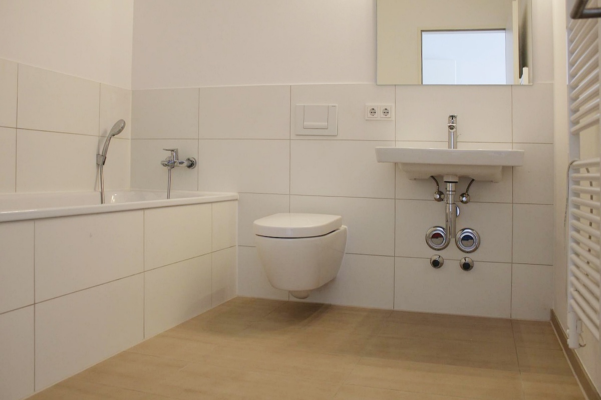Auch finden Sie auf dieser Ebene ein weiteres modernes Badezimmer mit Badewanne und Waschmaschinen Platz. Unser Fazit: Eine besondere Wohnung in einem der angesagtesten Stadtviertel von Düsseldorf. Ruhig gelegen, in Rheinnähe und dennoch mit kurzen Wegen in alle Teile der Landeshauptstadt.