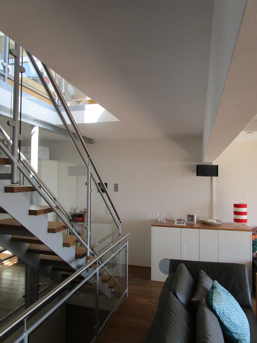 – Treppenanlage vom KG bis DG als offene Stahlkonstruktion